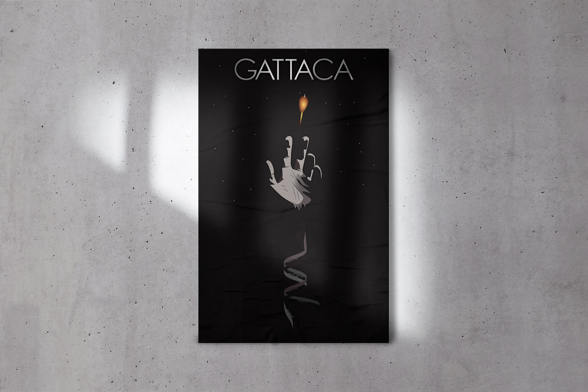 The movie GATTACA heavily revolves around genetic discrimination. The main character, is trying to become an astronaut despite not legally being allowed because he was born naturally and was not genetically modified. His left handedness gives him away, which is why I illustrated a left hand reaching for the space shuttle. Also, the arm unravels into DNA strands to represent the important genetics theme in the movie.