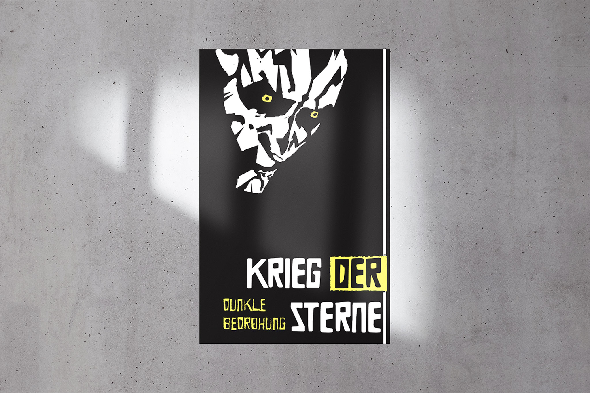 Here the goal was to make a poster in German Expressionist style. Influenced by the powerful woodcuts of German Expressionism, we created a jagged Darth Maul portrait. The text translates to: Star Wars: The Phantom Menace This was a group effort, but I was the illustrator of the group’s ideas and Godwin Appiah also helped with the finishing touches.