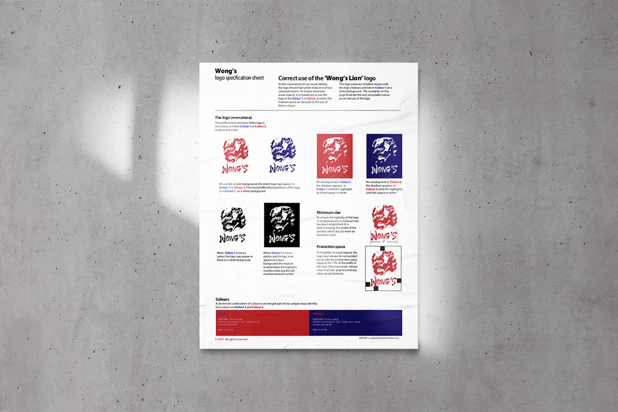 The spec sheet I created for the lion logo I created for the Wong’s restaurant I made up. It’s a traditional ink style rendition of a Chinese lion dog or shishi. I got the idea after taking a picture of a stone lion statue that flanks the gateways to Montreal’s Chinatown.