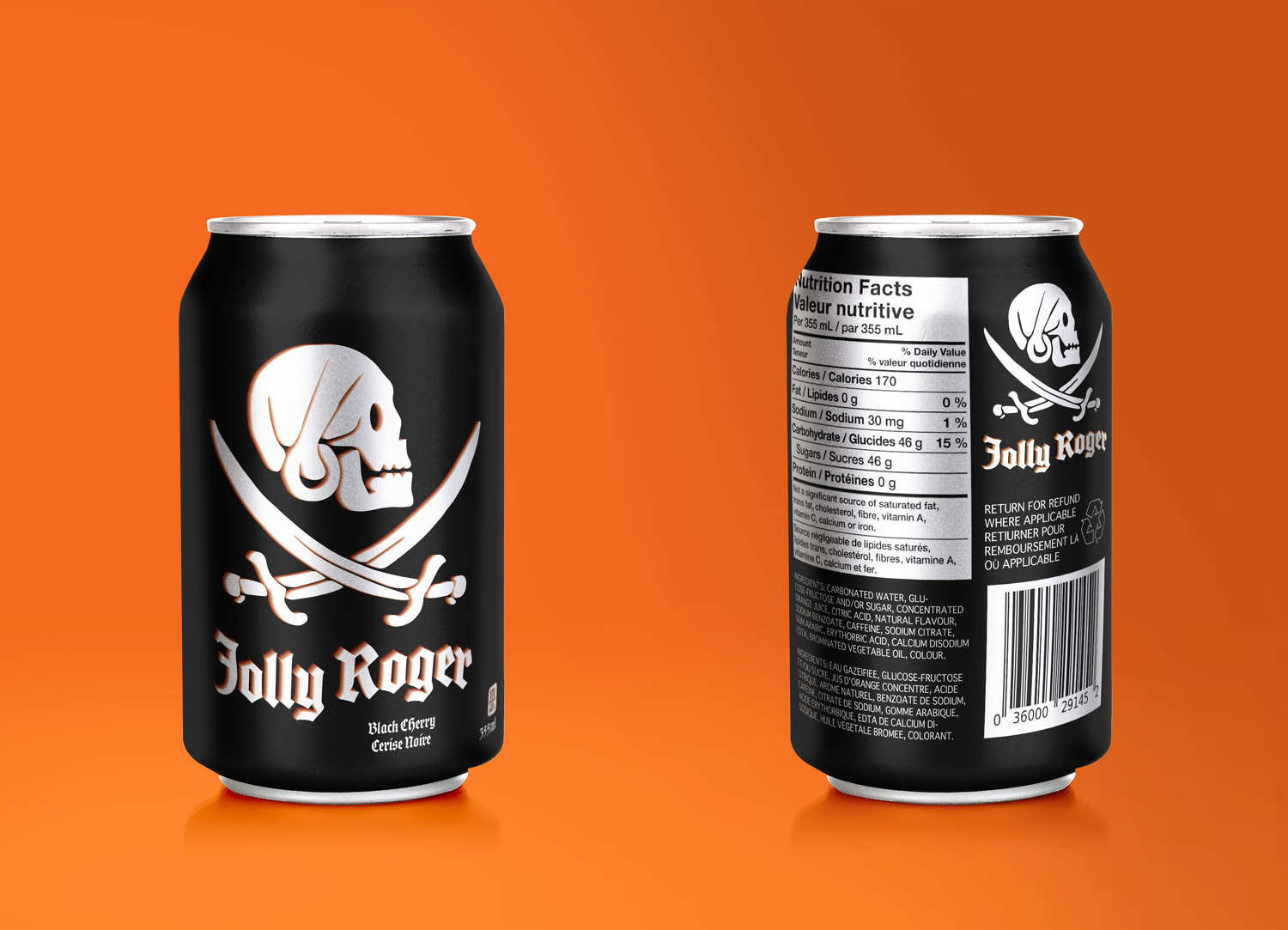 A concept for a soda brand’s cans. I took my favourite elements from Calico Jack’s and Henry Avery’s pirate flags then added the pirate feeling black-letter font. The classic can is simple black and white like a real Jolly Roger flag. It also has subtle red accents representing the black cherry flavor.