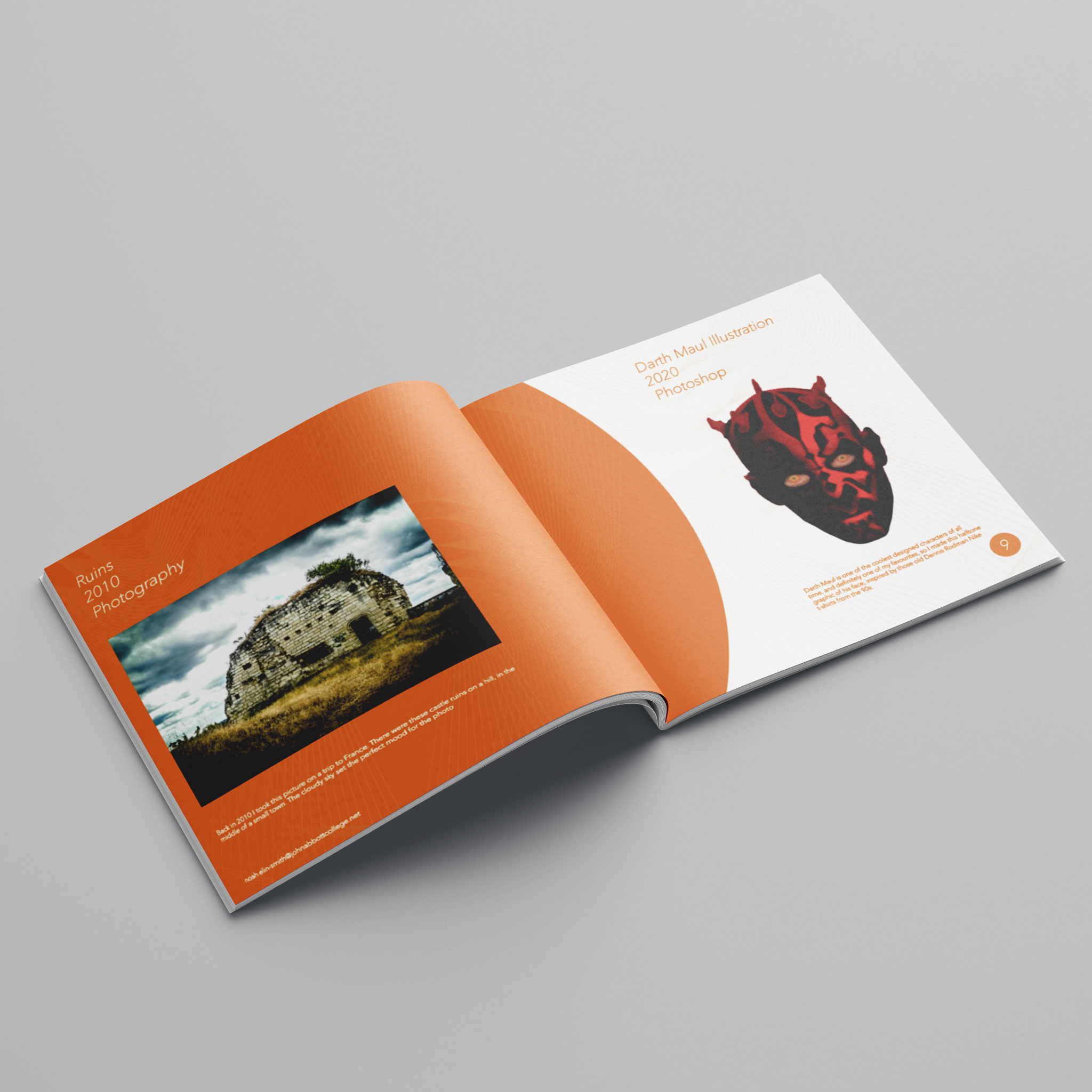 A print booklet design to display a handful of my favorite pieces as well as my page and layout design skills and establish some personal branding.